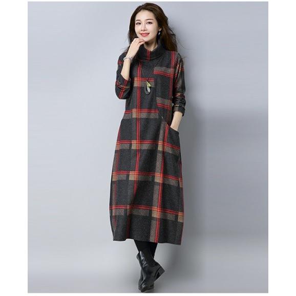 ワンピース チュニック ロング丈 マキシ丈 長袖 裏ボア 暖かい 秋 冬 レトロ タートルネック チェック柄 トップス ワンピ カジュアル 大人可愛い 体型カバー tagx10566 london bridge 通販 yahoo ショッピング