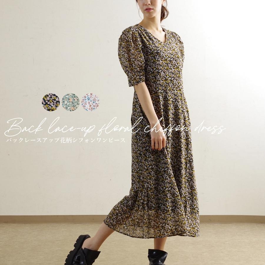 ワンピース 半袖 ロング 小花柄 シフォン レディース ファッション 春 夏 30代 20代 きれいめ 可愛い プチプラ 透け素材 シアー レースアップ 33060302 anlulu 通販 yahoo ショッピング