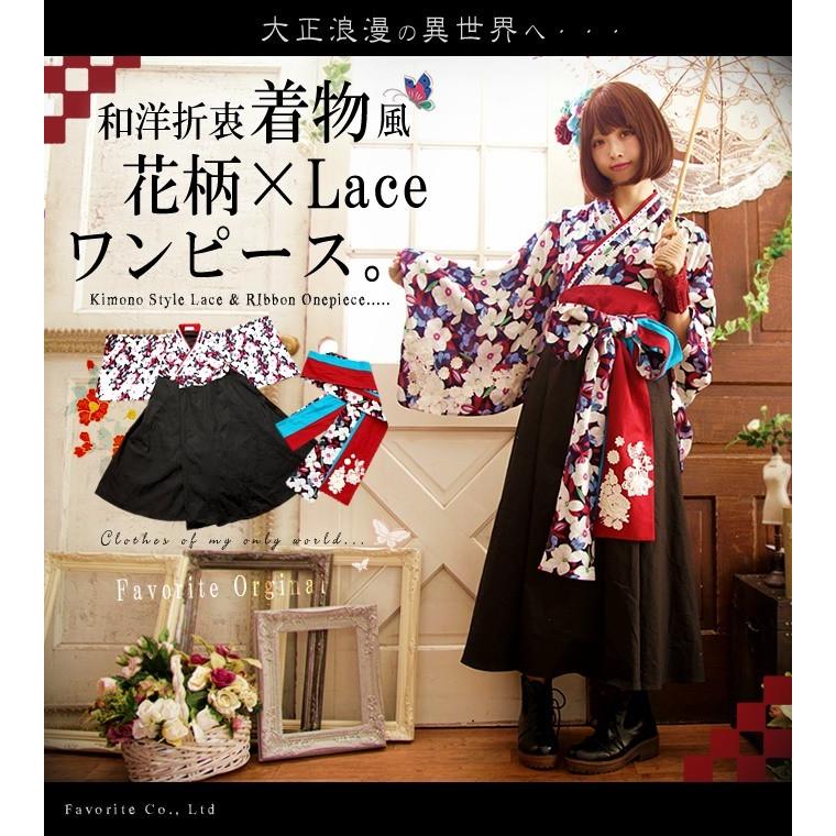 楽天市場 和装 ワンピース ロング丈 favoriteオリジナル レトロ 着物 和風 洋風 チューリップ柄 パープル帯 白レースと翡翠の泉和装ワンピース 2019年2月新作上旬 新作予約 4月20日頃より順次発送予定 あす楽対応不可 ワンピース専門店 favo レトロ 着物