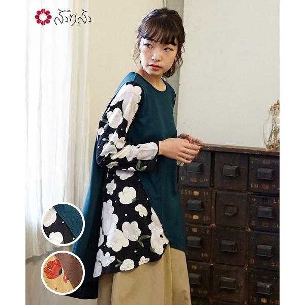 レディース ワンピース 注文後の変更キャンセル返品 半袖 華やか和柄のポイントパッチワーク ロング丈のボックスワンピース アジアンファッション エスニックファッション ロングワンピース n marai チュニック ドレス ゆったり 春物 コットン