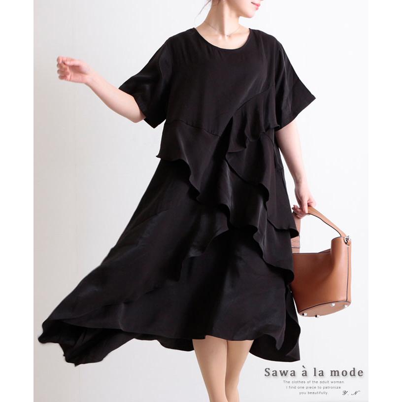 amazon サワ アラモード アシンメトリー レイヤード フレア 変形 ワンピース レディース mode 6330 f ブラック ワンピース チュニック 通販