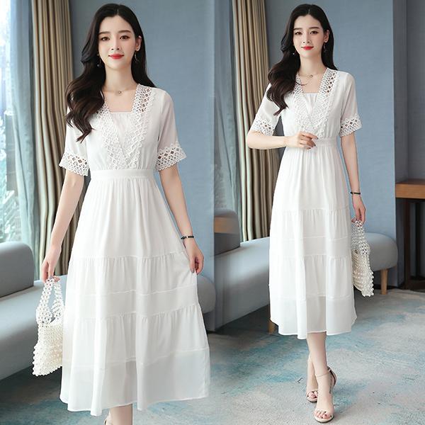 ワンピース レディース 40代 きれいめ 夏 マキシワンピース 五分袖 シフォン 無地 パーティードレス 韓国風 オシャレ ゆったり 通勤 大人 ol 上品 着痩せ 新品