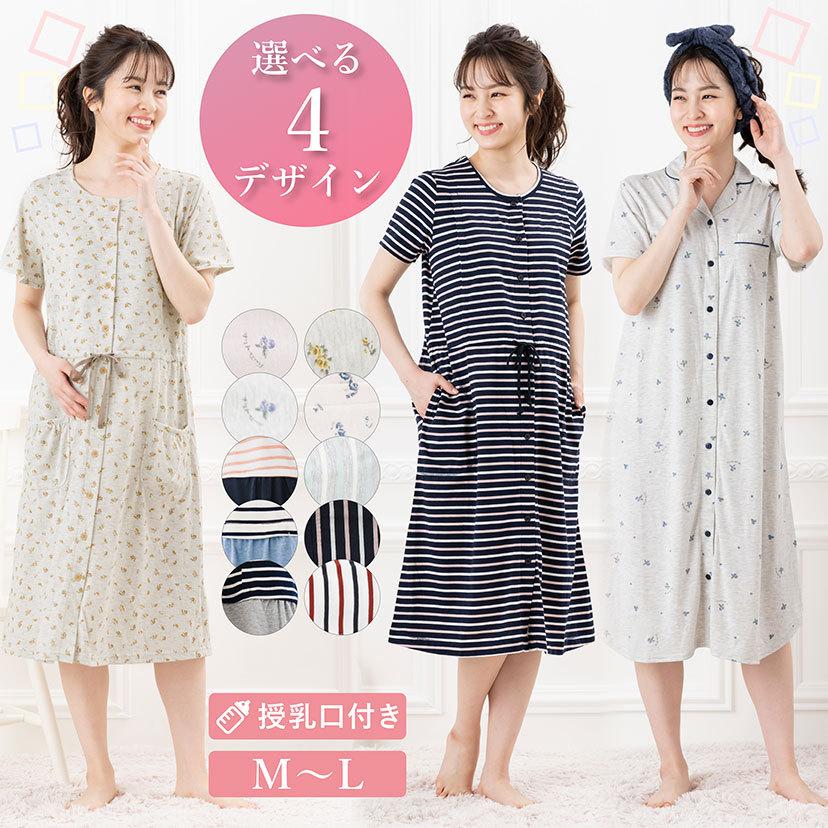 マタニティ ネグリジェ ルームウェア 前開き パジャマ ワンピース 大きいサイズ レディース 母 授乳口付き ママ 半袖 春秋 産前 産後 ピンク ネイビー m l 280093 elena 通販 yahoo ショッピング