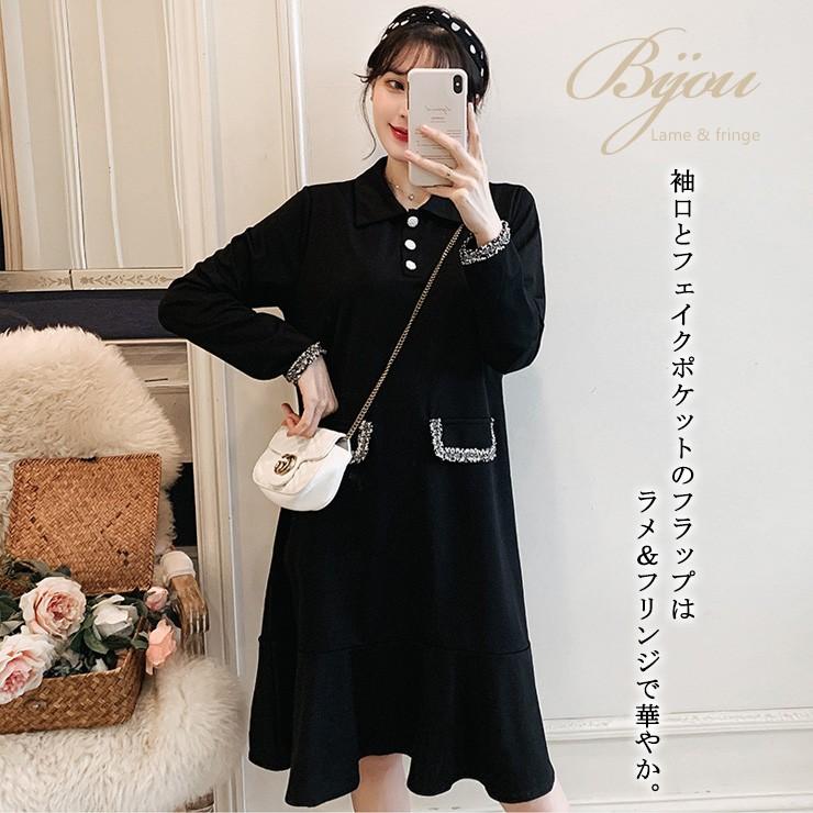 大きいサイズ レディース 重ね着風ワンピース 長袖 シャツワンピース 長袖 襟付き ワンピース 膝丈 シャツ 黒 白 シンプル ナチュラル aライン buyee buyee japanese proxy service buy from japan bot online