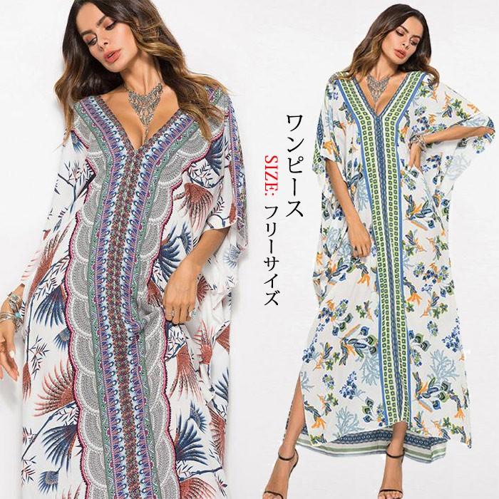 リゾートワンピ カフタンワンピース エスニック柄