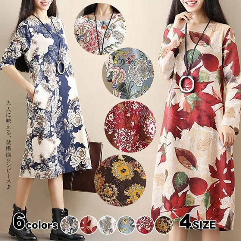amazon ラ ミア コンテッサ 切り替え ワンピース 秋冬 花柄スカート プリント レディース ワンピース チュニック 通販