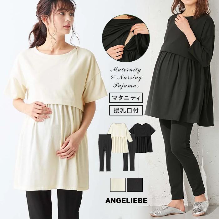 授乳服 マタニティ パジャマ 授乳口付 ティアードワンピース 産後も使えるレギンスセット マタニティパジャマ 長袖 長そで 妊婦服 マタニティー ママ マタニティ授乳服ベビー angeliebe 通販 paypayモール