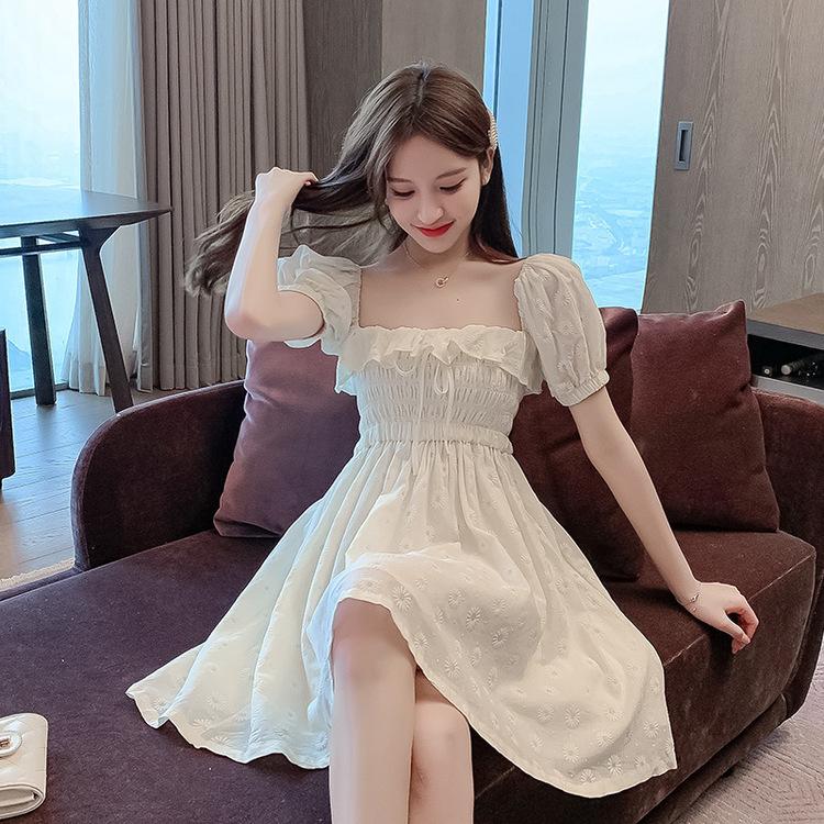 レディース激安 新作 新品 安い かわいい バルーン肩 ワンピース 刺繍レース ふんわり レディースワンピース お出かけ