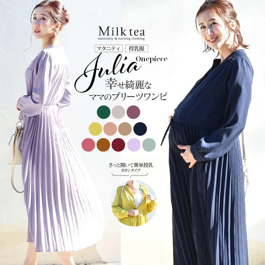 授乳服 マタニティ ジュリア 広がる美プリーツワンピース 6115113 ボタンタイプの授乳口 授乳 ワンピース フォーマル お宮参り 安い 8566 授乳服とマタニティ服のmilk tea 通販 yahoo ショッピング