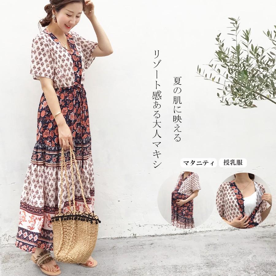 授乳服 マタニティ リネン コットン vネックロングワンピース ジッパータイプの授乳口 麻 綿 お洗濯ok 夏 リネン コットン お宮参り フォーマル お食い初め リゾート ママ フォーマル ロング マタニティok