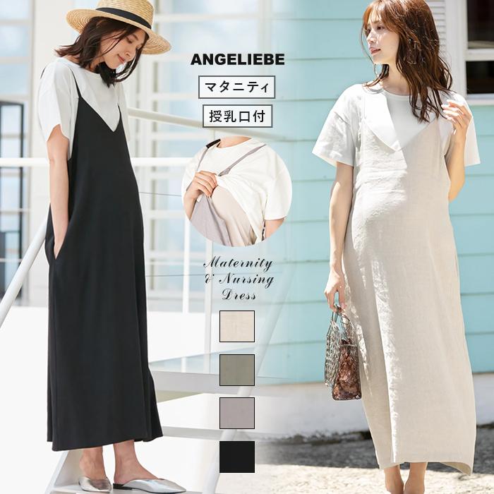 マタニティ 服 ワンピース 授乳口付 セット キャミワンピース スリーブレストップスセット 授乳服 妊婦服 マタニティワンピース au pay マーケット