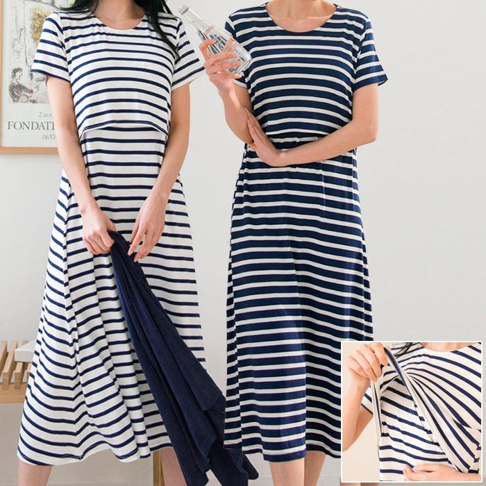 2点9800円対象 授乳服マタニティウェア 半袖 ロングワンピース