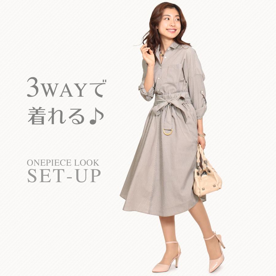 ワンピース レディース 40代 きれいめ 春 春夏 シャツワンピース 長袖 上品 通勤 セットアップ ツーピース 膝丈 膝下 ストライプ 30代 紺 大きいサイズ セール ax322170 大人のきれい服 モードアラカルト 通販 yahoo ショッピング