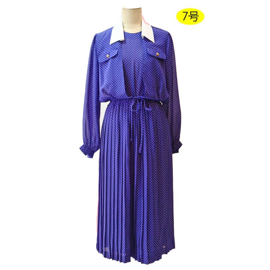 ドット柄 ボウタイ付 70年代 バックル付きベルトセット レトロ ガーリー レディース 長袖 昭和レトロ 国産古着 レトロワンピース 7056