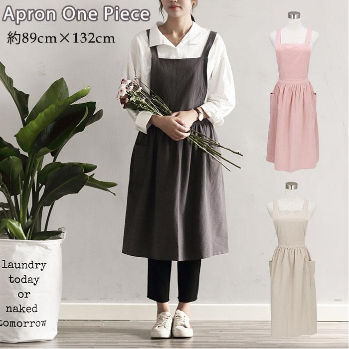 eroomtrend 綿麻混ラウンドネックゆるエプロン 頭からすっぽりと被れる楽ちんゆるエプロンボタンや紐を結ぶなどの手間をカット リネン コットン エプロン ワンピース レディース おしゃれ かわいい 保育士 母の日 プレゼント ギフト