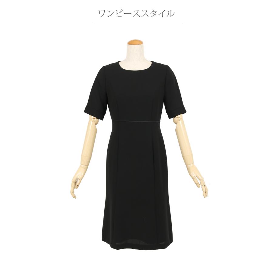 ブラックフォーマル 喪服 礼服 レディース 夏 袖コンシャスチェック使いワンピース 冠婚葬祭 セレモニー 葬儀 葬式 法事