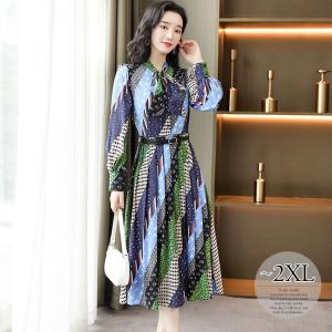 ワンピース ドレス レトロ 柄 ボウタイ 花柄 フレア エレガント 派手 大人可愛い パーティー 秋冬 nt0230