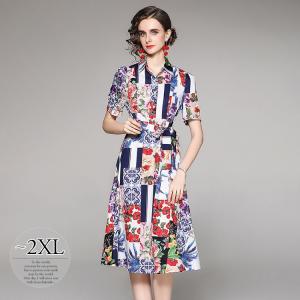 ワンピース ブラウスワンピース シャツワンピ 膝丈 プリント 派手 個性的 不規則 au wowma ワウマ