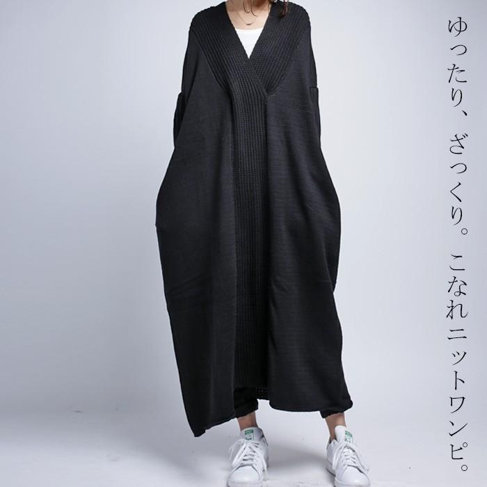 深vネックニットワンピース