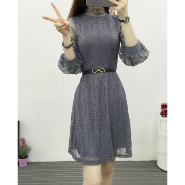 レース ショート丈 ミニ ワンピース フレア 白 7分袖 ナチュラル 清楚 フリル襟 リボン かわいい キュート プチプラ海外レディースファッション専門店 aaa style