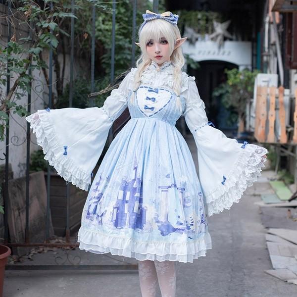 ロリータ 星空 半袖 ワンピース 甘ロリ 姫ロリ クラシカルロリータ クラロリ リボン たっぷりフリル ワンピース のみ 星柄 星 スター ロリータゴスロリ専門通販ショップluxury ラグジュアリー 安い価格で可愛いロリータワンピースを取り揃えています