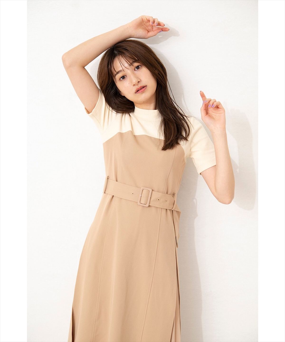 ワンピース レイヤード風 異素材ドッキングワンピース