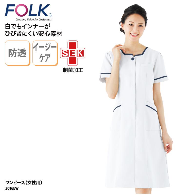 医療用ワンピース レディース ワンピース folk 半袖 白衣 医療白衣 ナースウエア ナース服 看護 医療 介護 防透性 ストラップ ペンホルダー 大きいサイズ m便 1 2