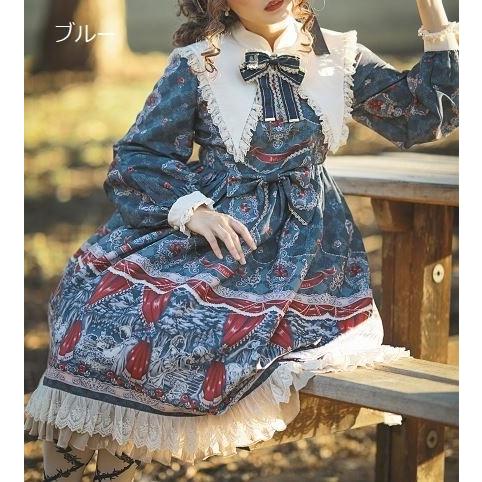 ロリータ ワンピース2色 クラシカル ブルー ワイン ミディアム 白雪姫 姫ロリ プリンセス ふんわり フレア フリル かわいい キュート ユメカワ お姫様 プリント loli2335 luxury ラグジュアリ 通販 yahoo ショッピング