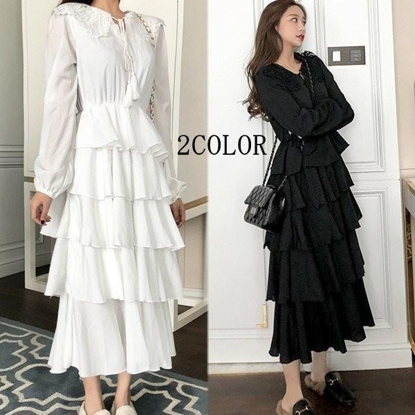 フリルタイ付き ゴシック調ロングワンピース 白黒 marble online shop