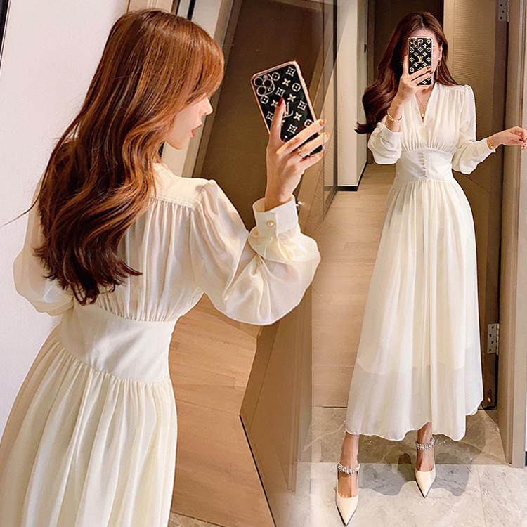 ワンピース レディース 40代ワンピース 秋新作 長袖ワンピース きれいめ 白シフォンワンピース vネック フレアスカート オシャレ 結婚式ドレス お出かけ 大人 y283287 fairyhouse 通販 yahoo ショッピング