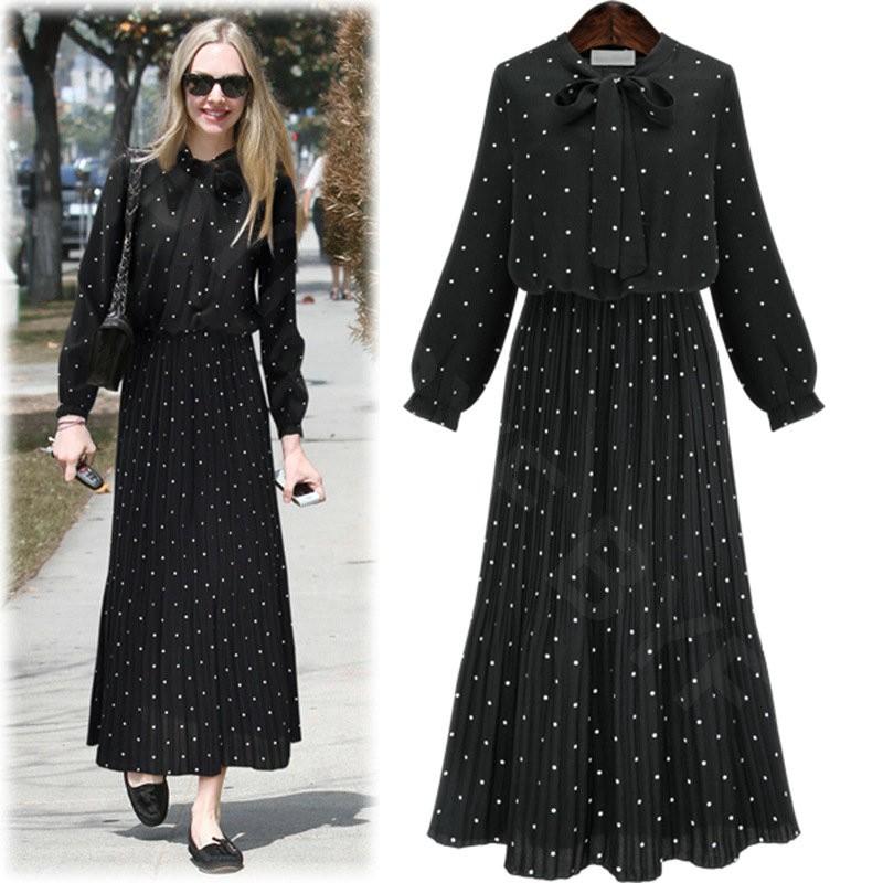 sale 送料0mixドット柄のワンピース ミモレ丈ワンピ黒ベースに茶と白のドット mixドットワンピ