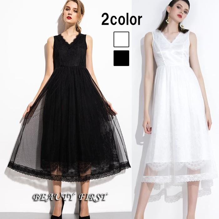 レース調ノースリーブワンピース 白ホワイト 黒ブラック レディース ワンピース ノースリーブ 膝下丈 ロングワンピース レース 高級感 上品 パーティー auibs2 beauty first 通販 yahoo ショッピング
