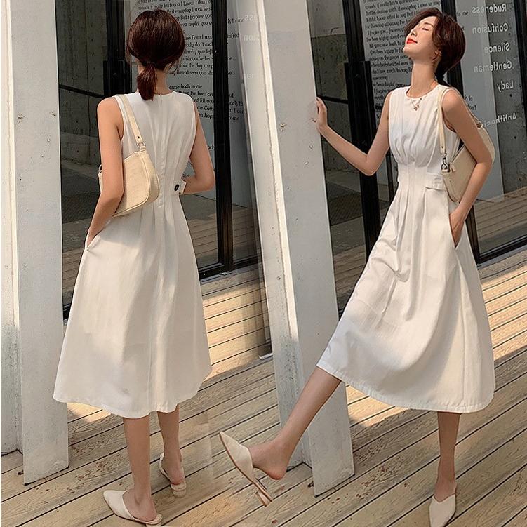 短納期 ワンピース ワンピ aラインワンピース ノースリーブ 無地 白 通勤 お呼ばれ レディース シンプル セレブ風 デート 夏 2018の通販はwowma コスモスカイ 白 ノースリーブ ワンピース aライン ワンピース