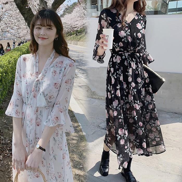 ワンピース 花柄 レディース ロング ロングワンピース フリル スキッパー 白 春 韓国 メール便送料無料 ch wn 5004 海外ファッション joyfeel 通販 yahoo ショッピング