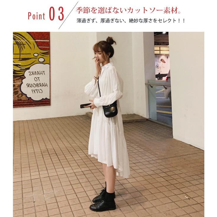 ワンピース シャツワンピース ひざ下丈 ひざ丈 襟付き 長袖 無地 xライン ウエストリボン フレア 前開き 大人可愛い カジュアル シンプル 春夏 お出かけ 休日 白 prism one プリズム ワン powered by base