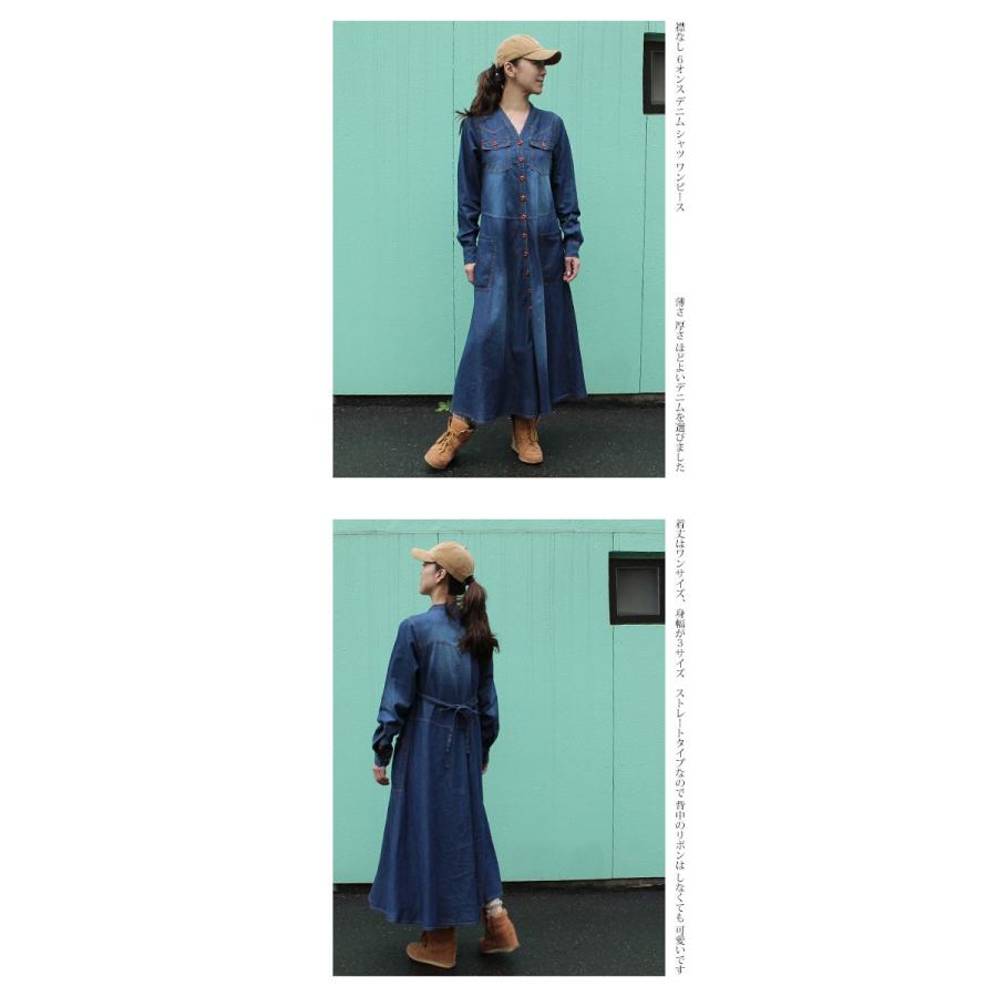 着丈約130cm 襟なし6オンス デニム シャツワンピース 6oz ワンピース デニム ロング マキシ コットン aライン 長袖 シーズンフリー カジュアル ドレス canday