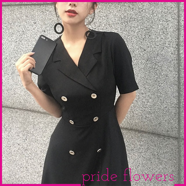 パーティーにもok テーラードカラーボタンワンピース base mag