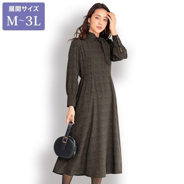 ウエストサイドリボン花柄ワンピース 春 夏 秋 ワンピース ロングワンピース ワンピ リボン 長袖 モノトーン ロング丈 プリント 花柄 大人 ロング クラシック レトロ キレイ 楽ちん 体型カバー 21ss3196on