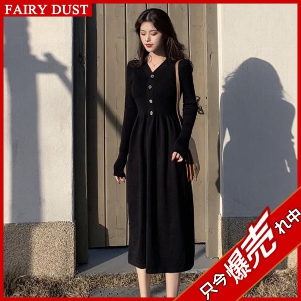 ニット ワンピース シンプル マキシ丈 ドロップショルダー レディース 長袖 ロング丈ワンピ 細身 ボタン