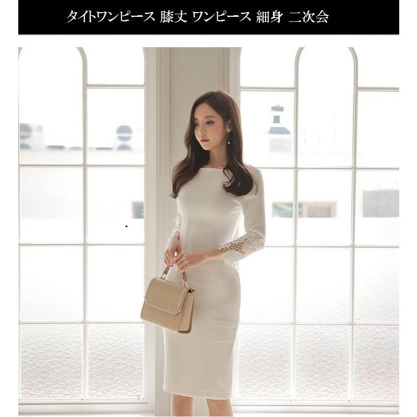 ブラック タイトワンピース パーティードレス 30代 40代 韓国風 7分袖 無地 胸元 ワンピース 細身 セクシー ロングワンピース 黒 着痩せ au pay マーケット