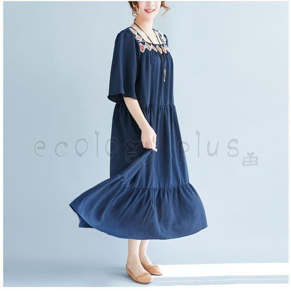 週間売れ筋 大人 紺色 ネイビー ワンピース ロング aライン 七分袖 フリル レース 襟 花柄 送料無料 ワンピース 上品 レディース ファッション 韓国 きれいめ ワンピース www collegedemahina pf