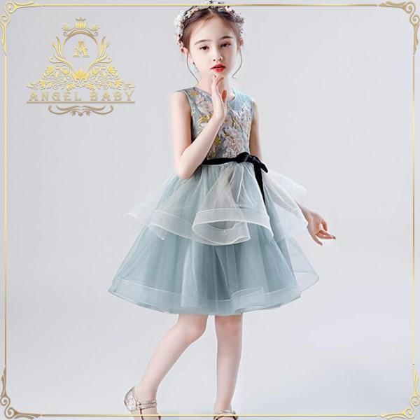 子供ドレス 008048 結婚式 発表会 女の子 レース フォーマルドレス 110 120 130 140 150 160cm キッズ ジュニア ワンピース コンクール ブルー ライラック ブラッシュピンク 008048