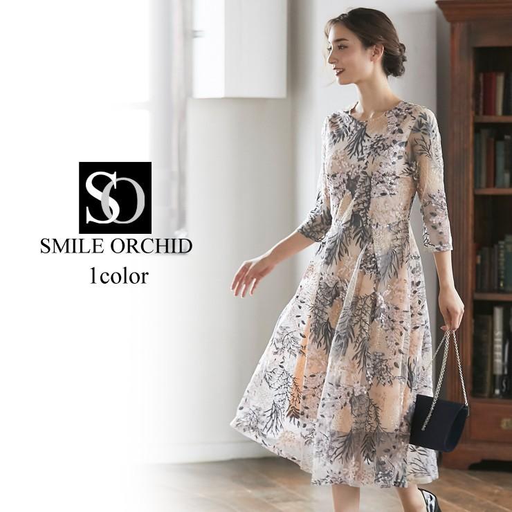 結婚式 ワンピース パーティードレス レース グラデーション シアー 総レース 花柄 体型カバー 5分袖 袖あり オケージョン 1 5次会 春 夏 秋 冬 パーティドレス asa81978 fashionletter 通販 yahoo ショッピング