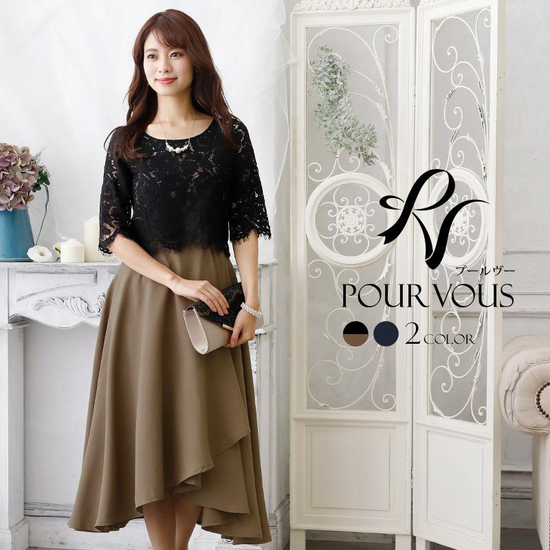 パーティードレス ミモレ丈 結婚式 ワンピース ミモレ丈 袖あり ドレス フォーマル お呼ばれ 服 服装 大きいサイズ 大人 上品 20代30 2703 セレブワンピース ドレスpourvous 通販 yahoo ショッピング