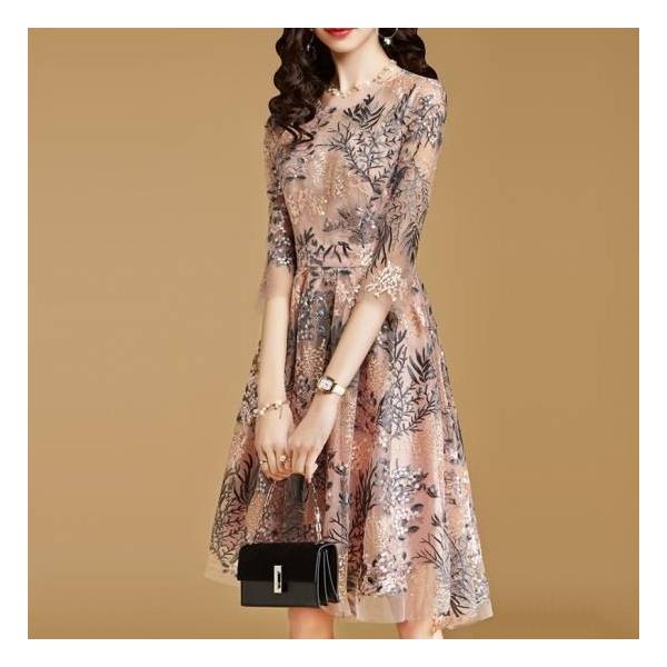 diki home パーティードレス 結婚式 お呼ばれ レース切替 ワンピース 半袖 刺繍 花柄 結婚式 二次会 ワンピース 演奏会 披露宴 謝恩会 ワンピース お呼ばれ ol 通勤 大きいサイズも対応 xs xxl