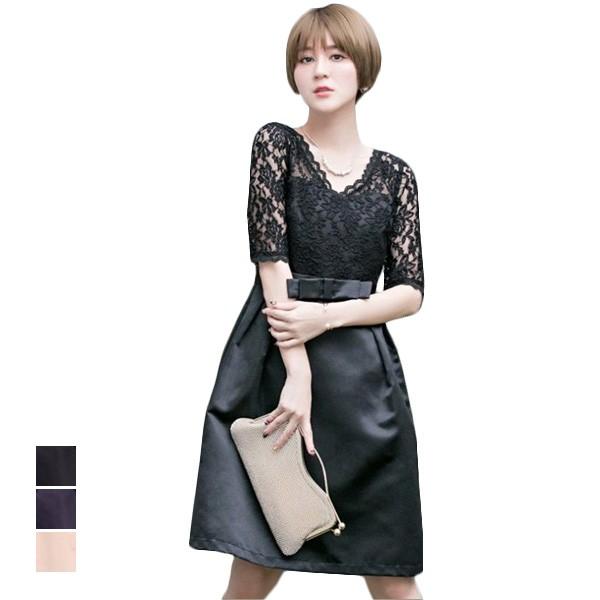 パーティードレス パーティドレス ワンピース ドレス 結婚式 二次会 お呼ばれ 膝丈 半袖 ファスナー 演奏会 披露宴 フォーマルドレス レース 女子会 お食事会 成人式 卒業式 同窓会 謝恩会 ピアノ bobi