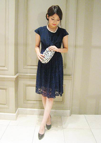 結婚 式 紺 ワンピース