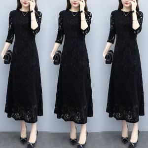 chuten 即日発送 パーティードレス ミモレ丈 総レース 長袖 結婚式 ワンピース パーティードレス ロング 黒 ブルー 入園式 二次会 謝恩会 同窓会 服装 発表会 大人 フォーマル 20代 30代 40代 50代 中天商事