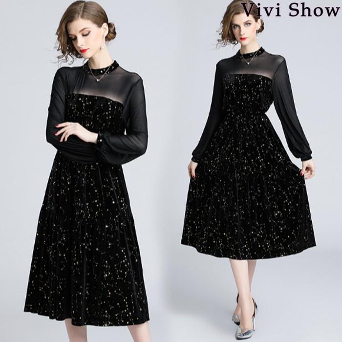 ベロア パーティドレス ワンピース 結婚式 new売り切れる前に フォーマルドレス エレガント レディース 秋冬ワンピース お呼ばれ ロング ゴールド 長袖 黒 上品 スリム