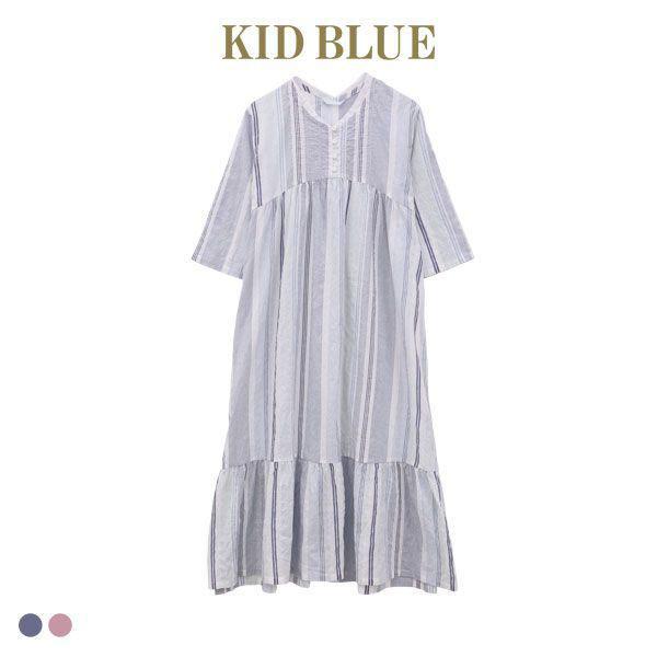 人気満点 キッドブルー kid blue 20シャーリングストライプ ワンピース ルームウェア パジャマ 7分袖 ナイティ ロング 日本全国送料無料 www muslimaidusa org